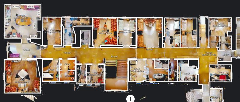 Domov pro seniory: veřejná prezentační prohlídka zahrnuje vstup, jídelnu, ukázkový pokoj a zahradu; technická verze obsahuje kompletní 3D data a mračno bodů, dispozice budov a nasnímaný každý prostor - do detailu.